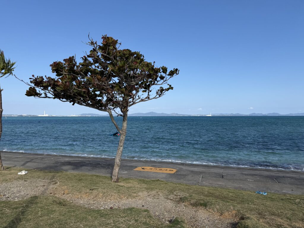 北風が吹けば海中道路でオンショアになり安全にスクール可能です