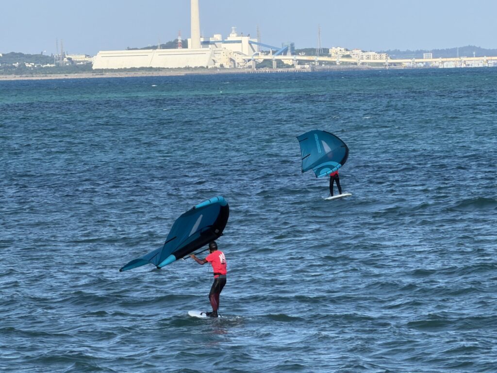 沖縄では10月くらいから新北風(ミーニシ)が吹きはじめ、10月~7月まで沖縄海中道路でウイングフォイルスクール、レンタルを行っています