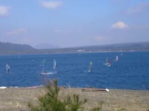 その後 風はお昼過ぎ頃ガスティーになり1度落ちかけたのですが 本吹きはまだだったようです。2時半から何時ものように山に雲がかかり安定して全面白波が入りドラゴンまでノンストップで横断できる状態にになりました。風も時折6.7オーバーまで上がり久しぶりに5.8セットしようかと思ったくらいです。