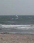南南西 12M前後 13時30分 現在 一度 13Mオーバーまで吹き上がりましたが今は少し 落ち着いてます。ウインドバカは初めて5、5 RSレーシングに85Lバーレででましたが波がチョッピーで間隔が狭く腹ぐらいの波が来るのでボードがでかく暴...