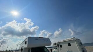 キャンピンカーで富津オンザビーチ 北海面北東バリバリ 南海面面ツル腰腹 メイン&サブバッテリー交換 予備の冷凍庫 宮崎牛