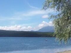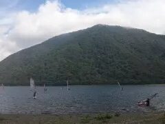 ウインドサーフィン&SUP&wing 西湖から見た本栖湖の山