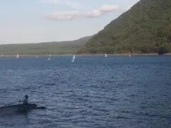 今朝は快晴で少し秋の気配も感じる気もします。風は朝から南西で右サイドから5M位の強めのブローが流れてます。でたら沖は走りそうな感じもします。やはり天気図が南西の吹く形になってますからずばりかな。ただ本栖湖の山の後ろ駿河湾方面にはまだ雲が湧い...
