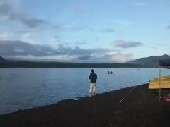 今朝は暖かいです。天気雲ベースで晴れまもある感じ。風は南風2M前後。キャンプ場も行きなり混んで来ました。お盆ですね。仲間達も朝から続々と西湖に集結しています。