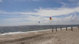 南西よりで6M前後入っています。カイト勢い良く走っています。ナオさんたぶん7、8だと思うのですがプレーニングしてます。昨日よりこの時間は吹いてます。これからもっと上がると思います。