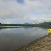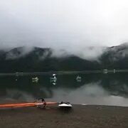 ウインドサーフィン&SUP&wing 西湖から見た本栖湖の山
