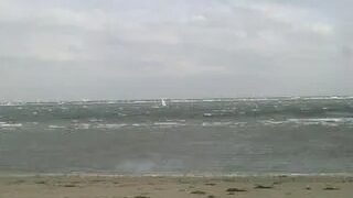 この時間北北東12mオーバー吹いてます。しかし海面スーパーフラット 最高です。雨も上がってます。