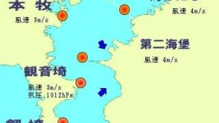上がって5から7Mです。やはり振れ戻して南南西です。