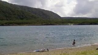 6点台の濃いブローが入って来ました。西湖がこの時間からプレーニングできるのは珍しいです。ただ夏休みだというのにウインドサーファーは一人も出ていません。貸し切りです。