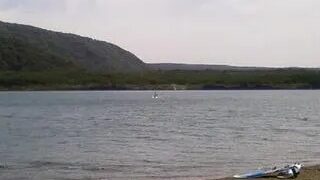 お昼前から6点台の大きいブローコンスタントに入っています。西湖では珍しく連続ジャイブが出来ます。天気も良く晴れています。又 下サンレイクも良く走ってますね。いい風です。