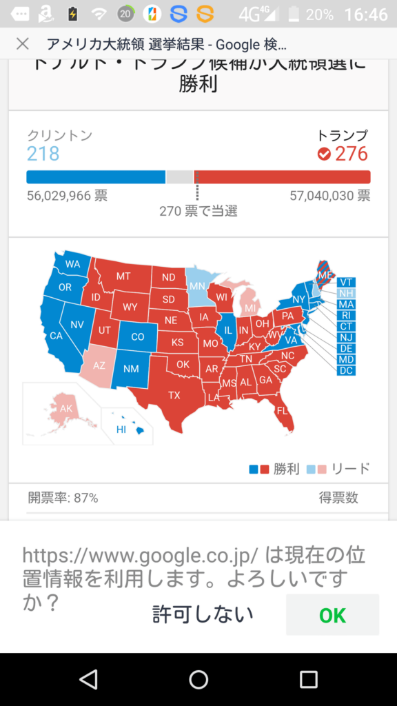 アメリカ大統領選挙 トランプ候補が勝利しました。 https://www.google.co.jp/search?q=%E3%82%A2%E3%83%A1%E3%83%AA%E3%82%AB%E5%A4%A7%E7%B5%B1%E9%A0%98%20%E9%81%B8%E6%8C%99%E7%B5%90%E6%9E%9C -